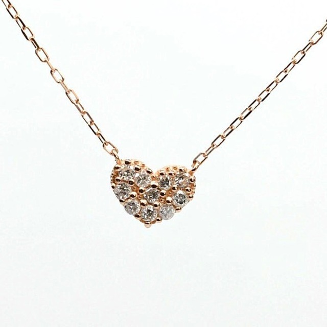 10金ピンクゴールド ダイヤネックレス ハート 11石0.17ct K10PG