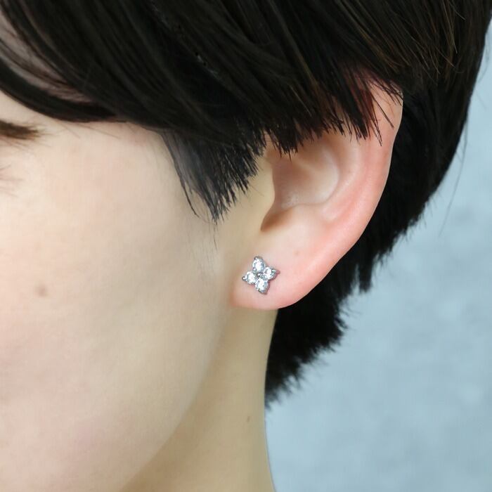 小ぶりなフラワーモチーフに、キラキラと輝くCZダイヤをあしらったデザインピアス。