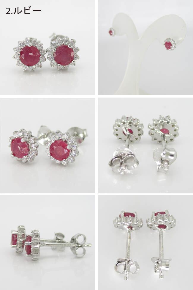 美しい天然石アメジストとルビーをそれぞれ主役に、輝きのある**キュービックジルコニア(CZ)**を添えた上品なピアス。