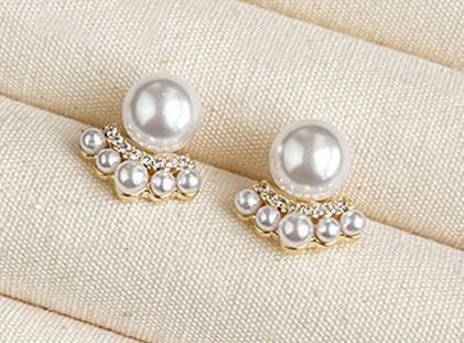 ゴールドカラーの縁取りと、花のように並んだ小粒パールが控えめな華やかさを演出します。
