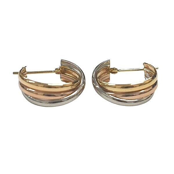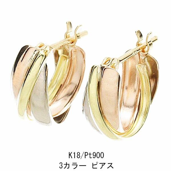 K10イエローゴールド・K10ピンクゴールド・プラチナ900を贅沢に使用したスリーカラーのクロッシングピアス。