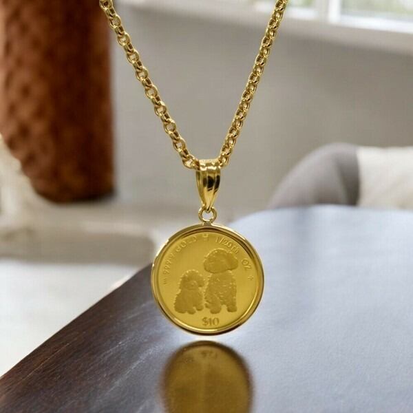 愛らしいトイプードルをモチーフにした**2024年限定発行の純金コインペンダント**です。
