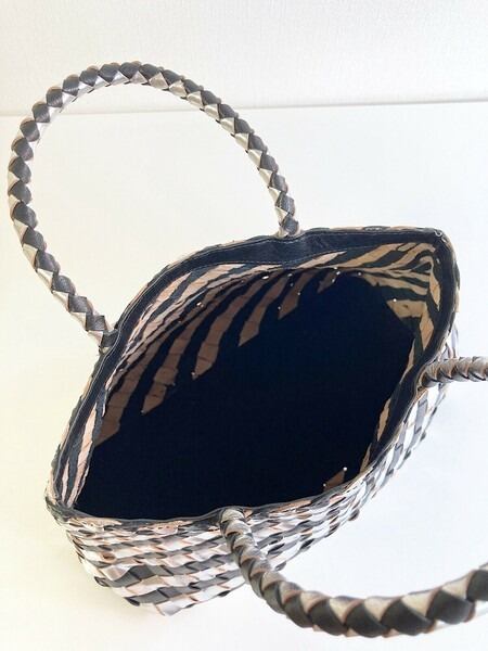 アシンメトリーに編み込まれたユニークなデザインが魅力の手編みメッシュバッグ。高品質な山羊革を使用し、使い込むほどにしなやかさと艶が増すエイジングも楽しめます。見た目以上の収納力で、デイリー使いにも最適です。