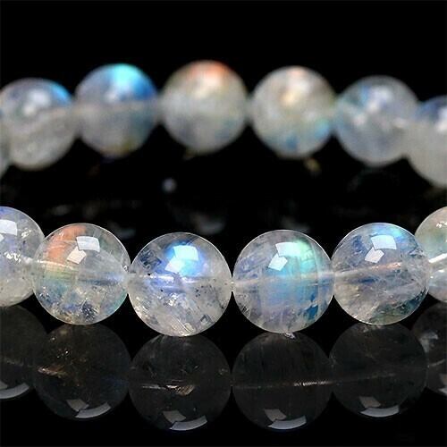 入手困難なマダガスカル産のレインボームーンストーンを使用した約10mm珠のブレスレット。
