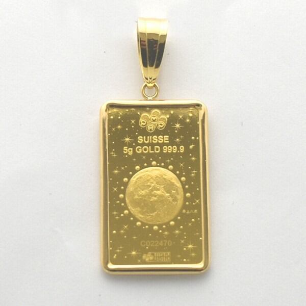 スイス・PAMP社製のK24(純金)5gにK18枠を施したペンダントトップ。