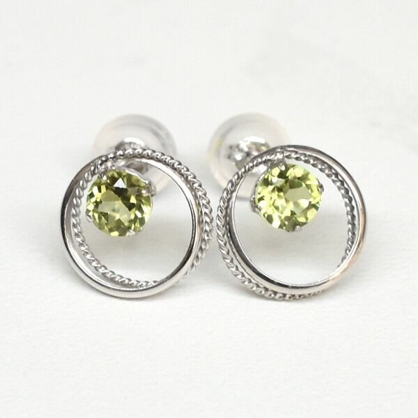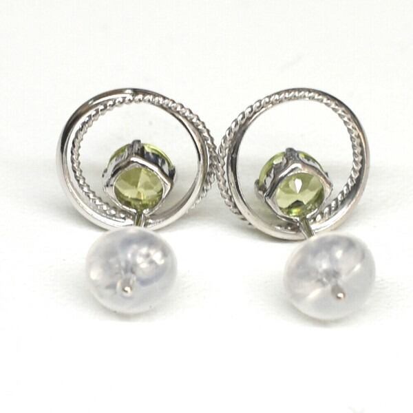 4mmのペリドットを2連サークルモチーフにセットしたK10ホワイトゴールド製ピアス。