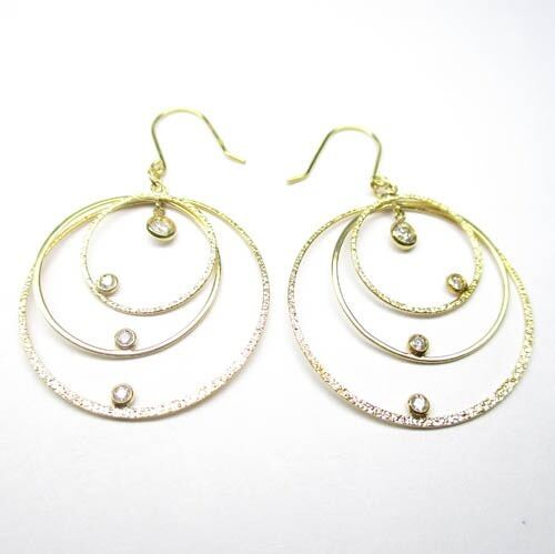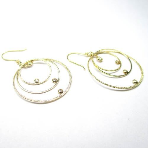 【18金】3連フープ ダイヤモンドピアス 0.24ct イエローゴールド K18