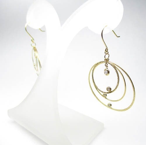 K18イエローゴールドに0.24カラットのダイヤモンドをあしらった、揺れるデザインのロングピアスです。