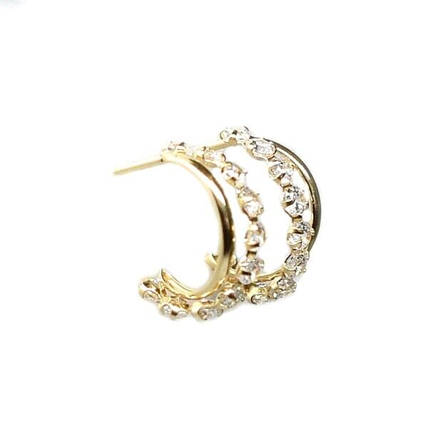 2mmキュービック10石と地金の組み合わせが美しいクロッシングデザインのピアス。