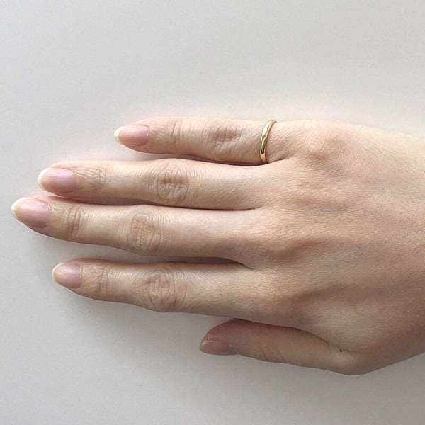 リング内側にはK18の刻印入り。細身で日常使いしやすいデザインです。