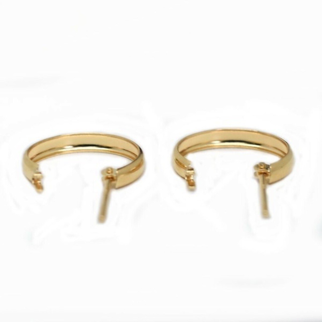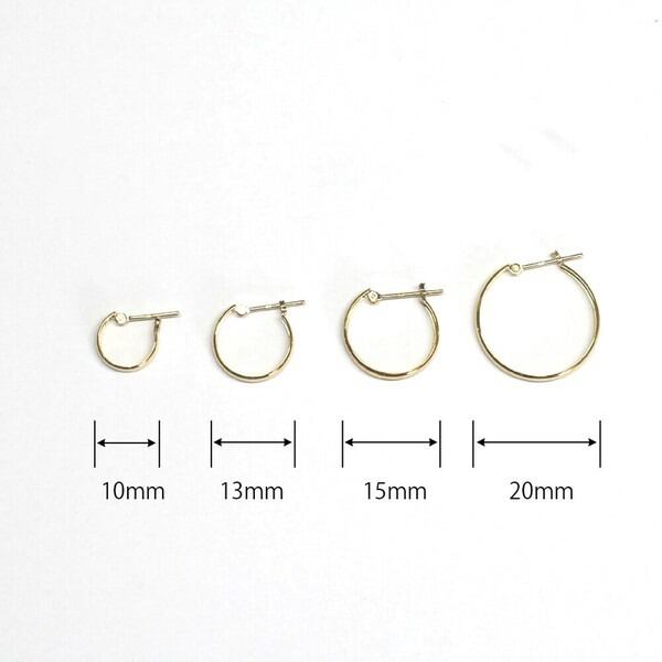K18で仕上げた人気のフープピアス。見た目は丸みのあるパイプ型ながら、コストを抑えるために半甲丸の「溝線」を使用しています。