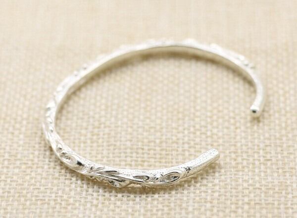 フェザーとアラベスクを融合させた美しい模様が印象的な、シルバー925製バングルです。