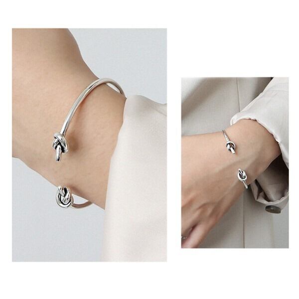 左右の先端が結ばれたようなデザインが特徴の、リボンモチーフ(bind)バングルでございます。