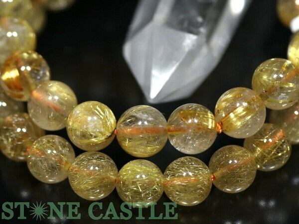 透明感のあるベースに、美しい黄金色の針が内包されたゴールデンルチルクォーツを使用しています。