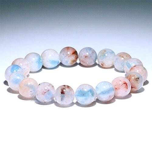 淡いピンクがかった優しい色味が魅力のアイランドアクアマリンを使用した天然石ブレスレットです。