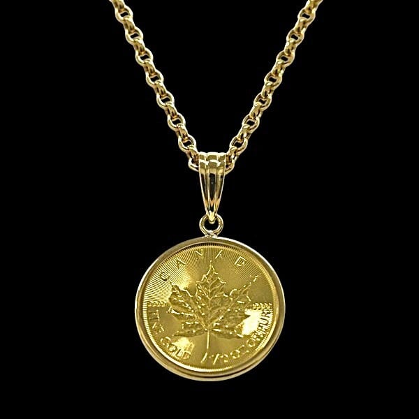 【24金】純金メイプルリーフ金貨 ペンダントトップK24 K18枠 18金 新品