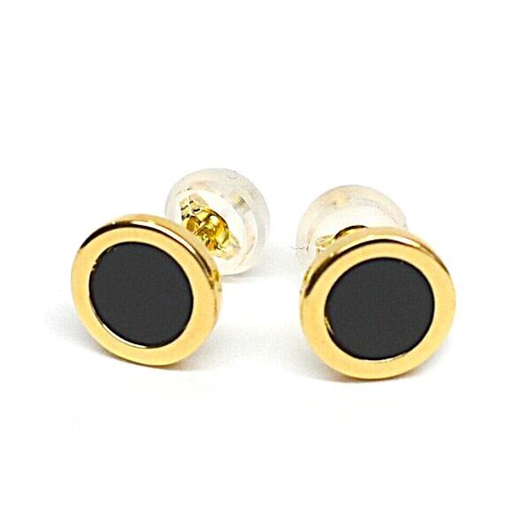 K18のフレームに深い黒が美しいオニキスをセットした上品なピアス。