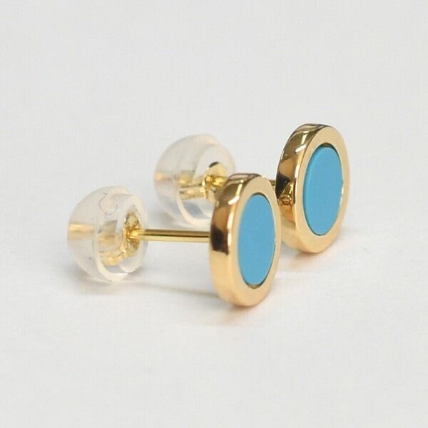 明るいスカイブルーが目を引くターコイズを使用した18金サークルピアス。