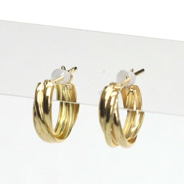 K18素材で仕立てた、3連に見える立体的なデザインのフープピアスです。