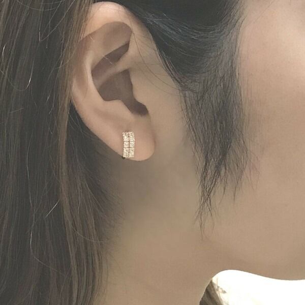 高品質な18金素材を使用したフープピアスに、直径2mmのキュービックを贅沢に10石セッティングしました。