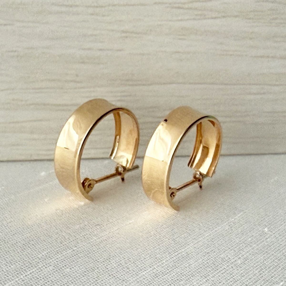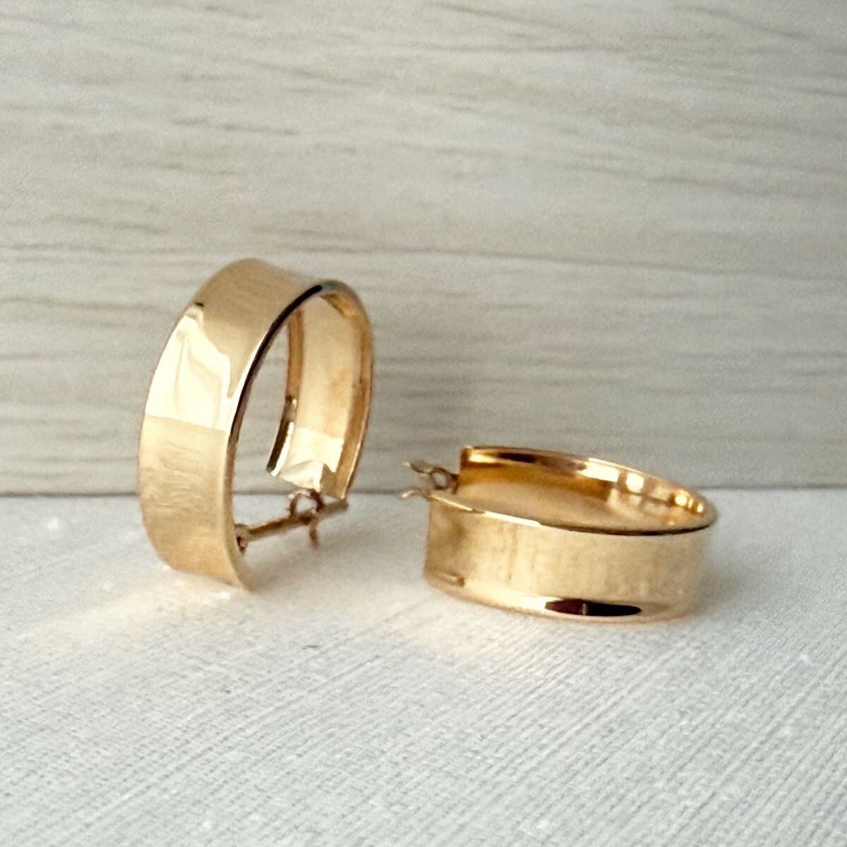 K18イエローゴールドを使用した、幅広ラインのシンプルなフープピアスです。