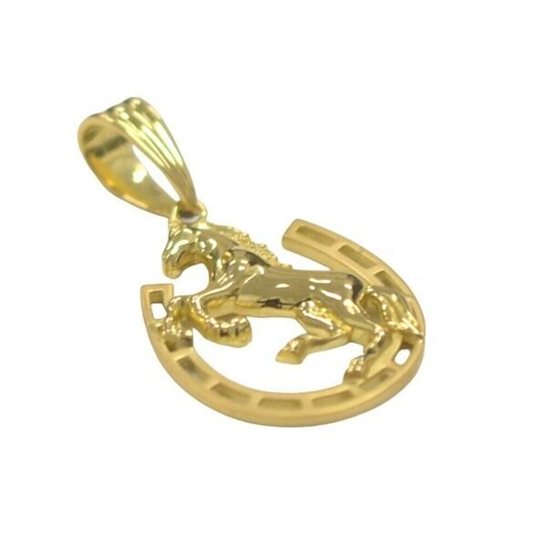 ツヤ消しの馬蹄モチーフの中に、躍動感あふれるホースのデザインを組み合わせた18金製ペンダントトップ。