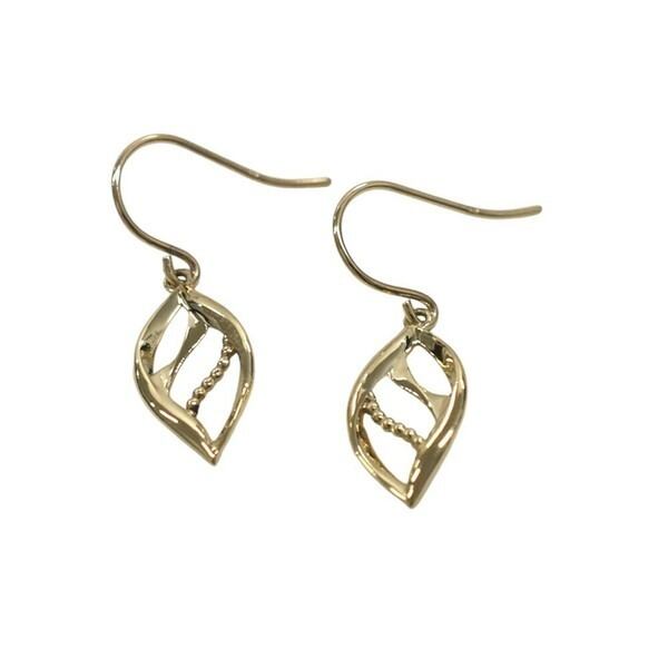 K10イエローゴールドを使用した、葉っぱを思わせるモチーフのフックピアス。