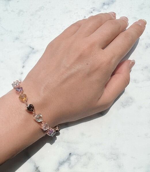 アメジストやトパーズ、クォーツなど7種類のストーンが美しく輝き、腕元を華やかに演出します。