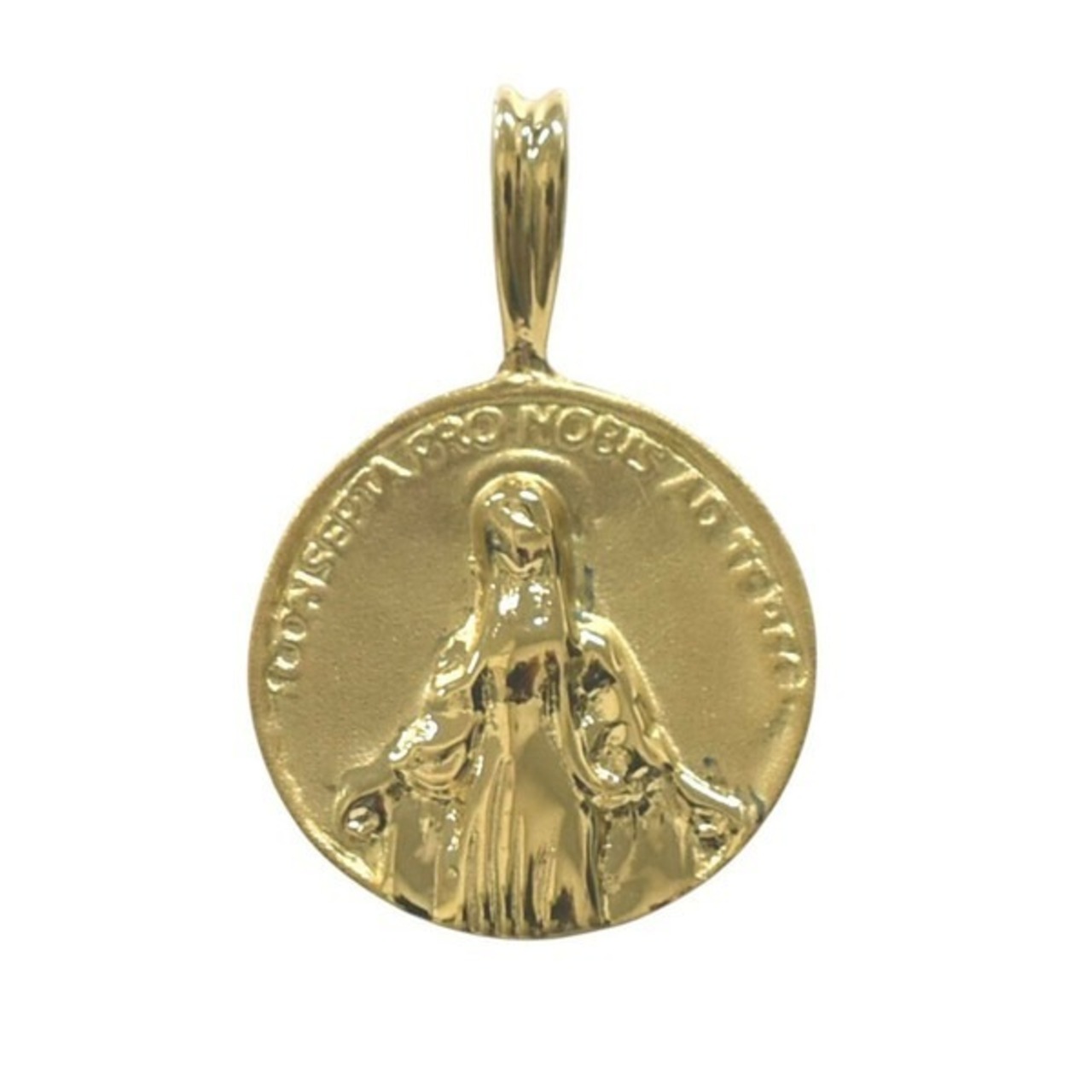 人気のマリアモチーフを小粒のラウンド型にデザインした18金ペンダントです。