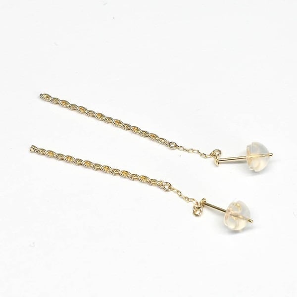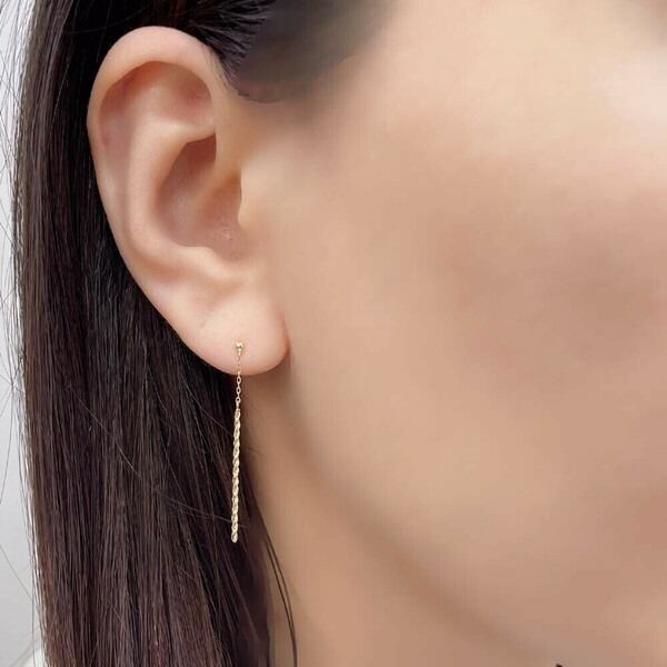ひねりを加えたK18バーを軽やかに揺れるよう仕上げたロングピアス。